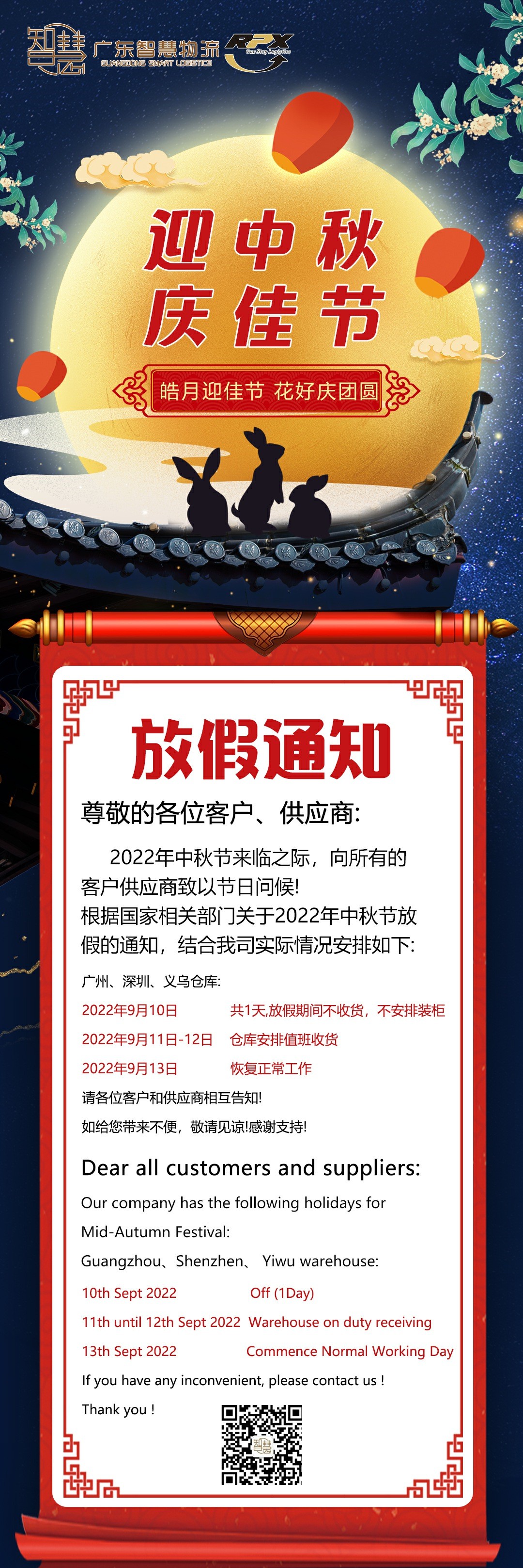 印尼馬來新加坡海運(yùn)的廣東智慧物流2022年中秋節(jié)放假安排。