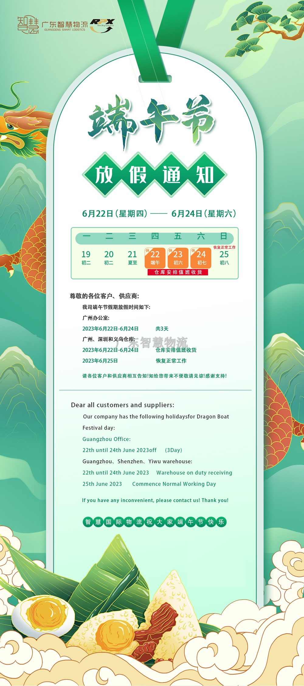 廣東智慧物流2023年端午節(jié)放假安排(印尼物流馬來|新加坡|菲律賓)